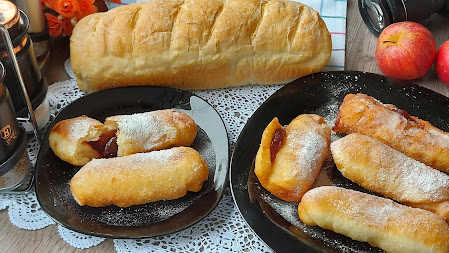 Deo odvojenog testa razviti oklagijom 1/2 cm debljine iseći na pravougaonike i puniti sa džemom.