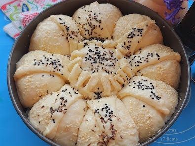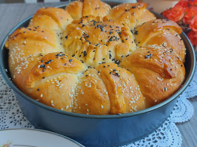 Pokriti da odmore pa premazati uljem i posuti semenkama da i krupnom solju. Peći na 200 stepeni oko 45 min. Pokriti da omekne Uživajte..