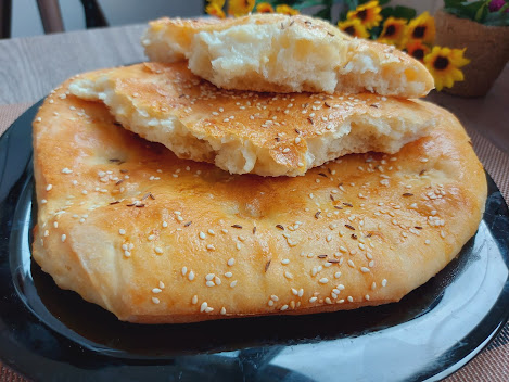 Posutu susamom i kimom Peći na 210-220 stepeni C oko 25 min.. Pokriti krpom. Fantastičnog ukusa mekana kao duša..