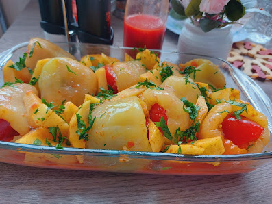 Sve izmešati. Puniti papriku smrznuti ili svežu i zatvarati paradajztom ili listićima krompira. Redjati u podmazan pleh.