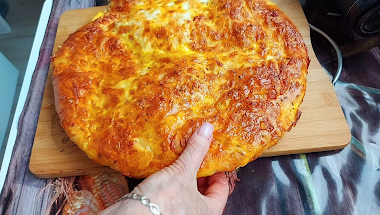 Odozgo dodati još kačkavalja. Pokriti i odmoriti 15 min . Premazati žumancetom, pa peći na 180 stepeni C oko 30-40 min da lepo porumeni. Najmekša pogača na svetu tako ukusna. Pravite obavezno za kad imate svečanosti i budite ponosni na svoj rad. Uživajte!